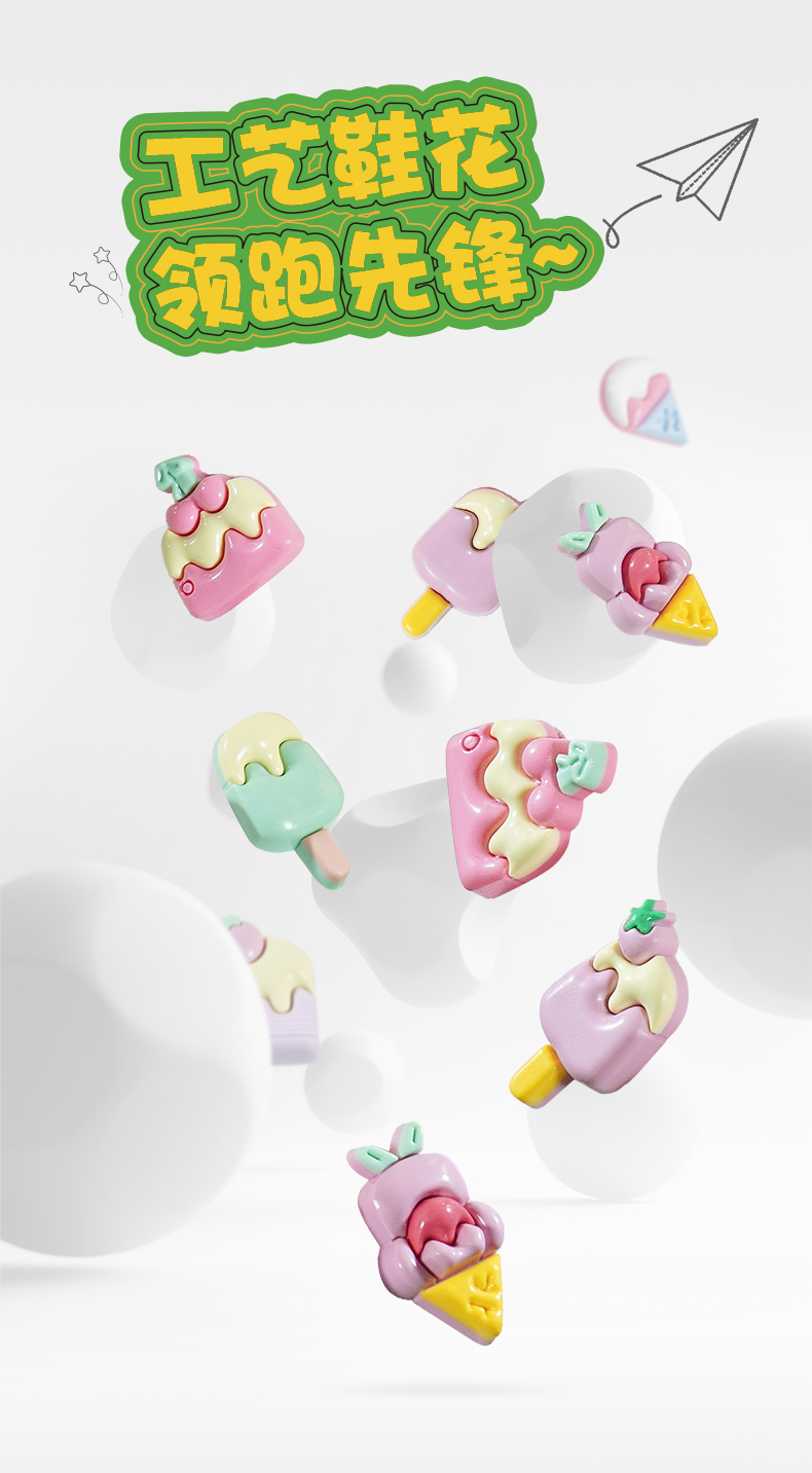 夏日甜心冰棒冰淇淋鞋花|可爱卡通洞洞鞋装饰|鞋扣|儿童成人通用鞋饰配件